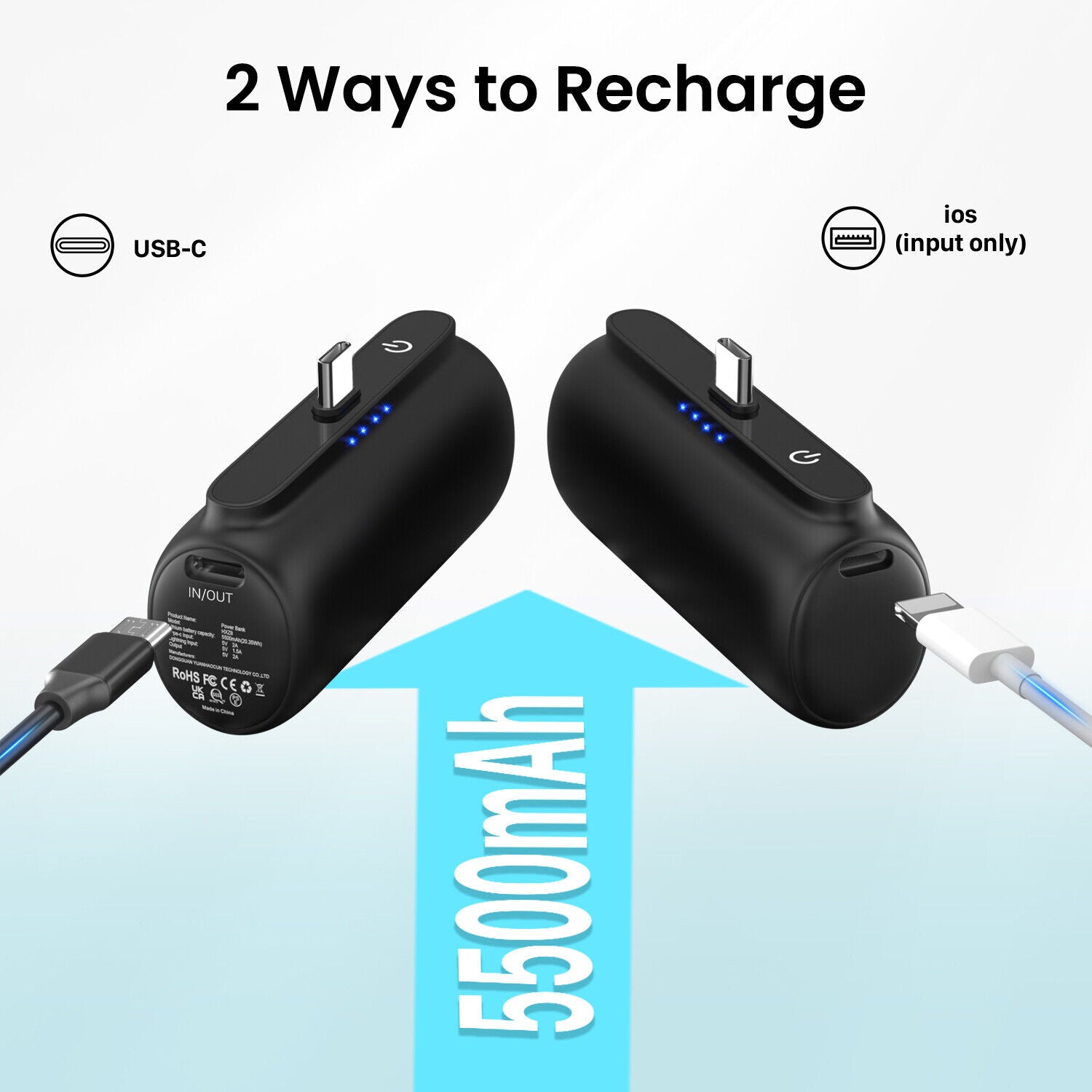 ( 18W Fast Charging PD USB C Input/Output ) Mini Portable Charger 5500mAh Ultra-Compact Power Bank