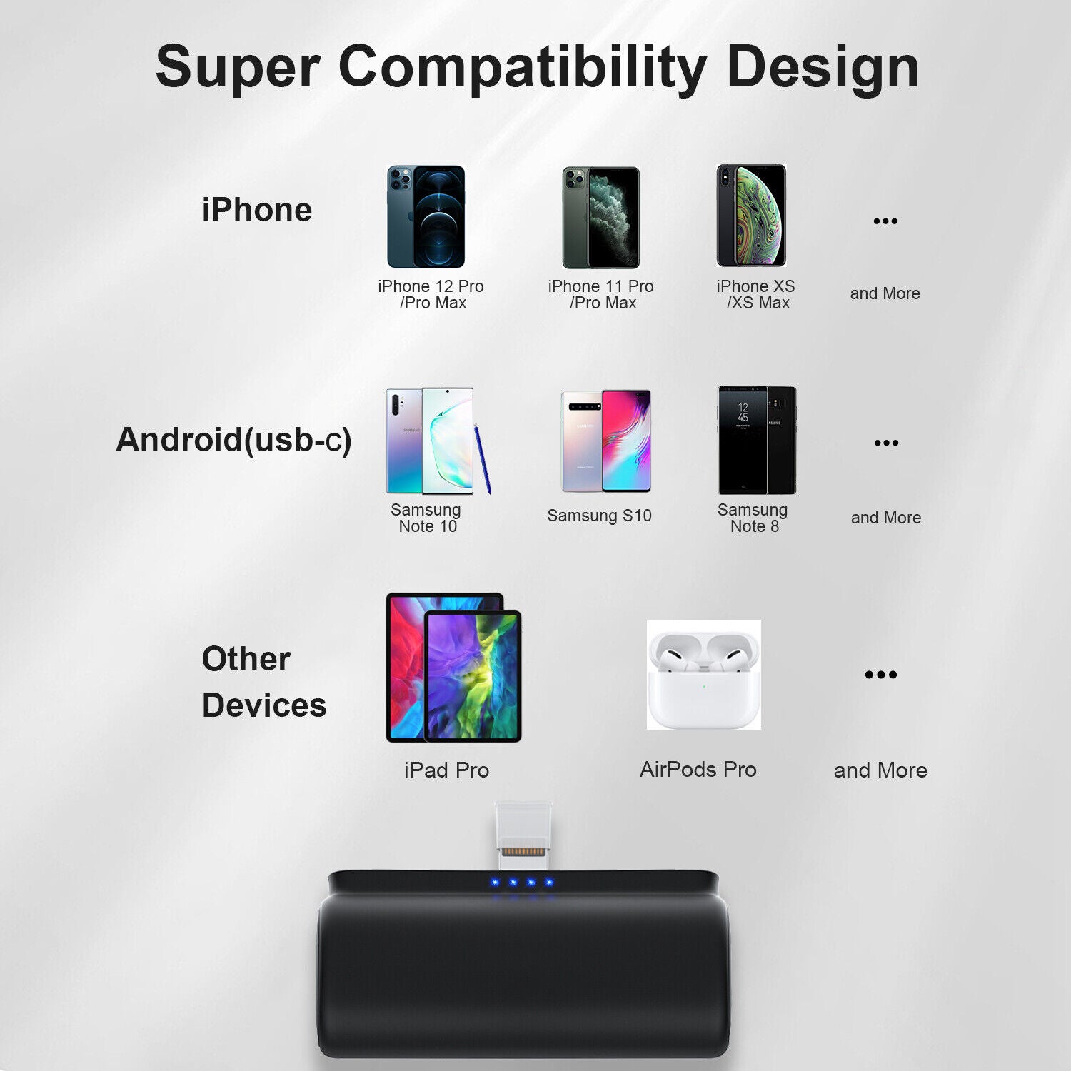 Compatible with: Widely Compatible with ALL USB-C Connector Mobile phone , ALL Lightning Connector Mobile phone and all iPhone series ( iPhone 14... 13 /13 Pro / 13 Pro Max / 13 Mini / 12 / 12 Pro / 12 Pro Max / 12 Mini .. 8 / 7 / 6 /6S /6 Plus / SE / 5...) and Airpods too.... ect..